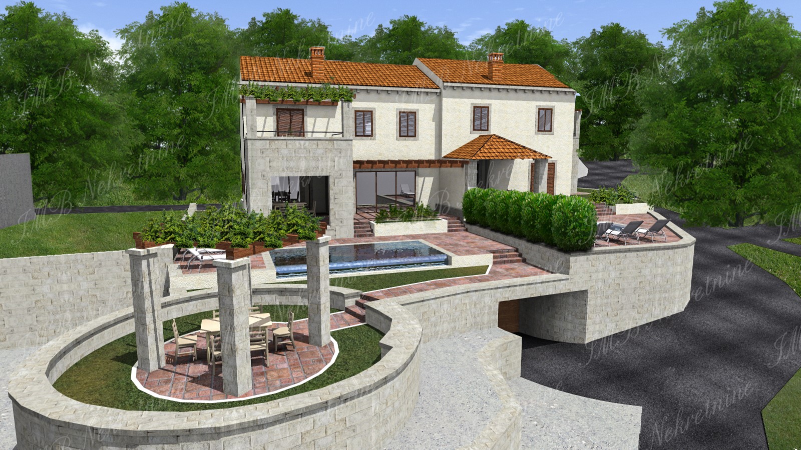 - Zemljište sa započetom izgradnjom dvojnih kuća s bazenima u zelenilu - Dubrovnik okolica